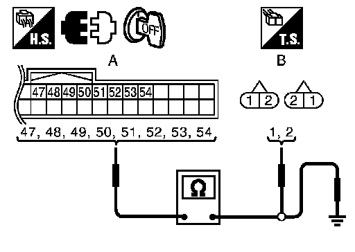 2. Check continuity between Intelligent Key unit connector and inside key antenna connector.