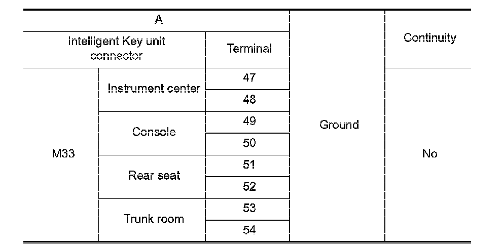 3. Check continuity between Intelligent Key unit connector and ground.