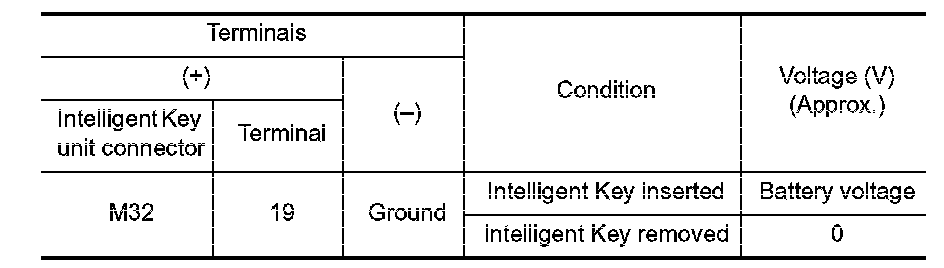 Check voltage between Intelligent Key unit harness connector and ground.