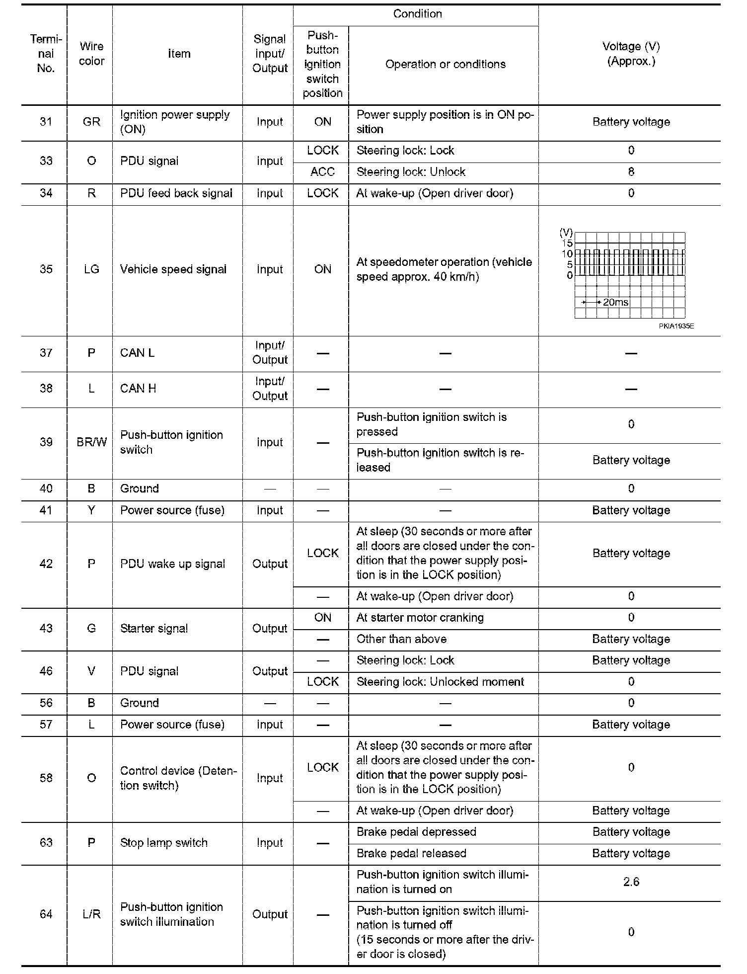 Pinout Values and Diagnostic Parameters