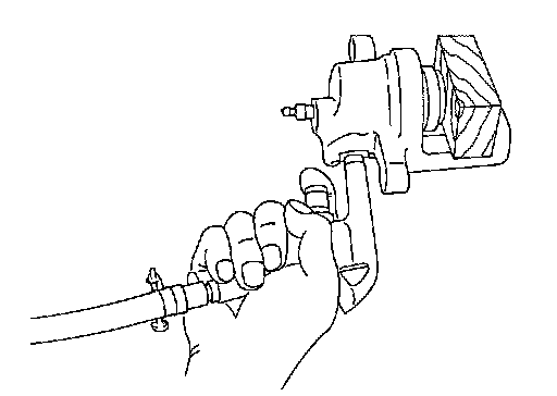 4. Place a wooden block as shown in the figure, and blow air from union bolt mounting hole to remove piston and piston boot.