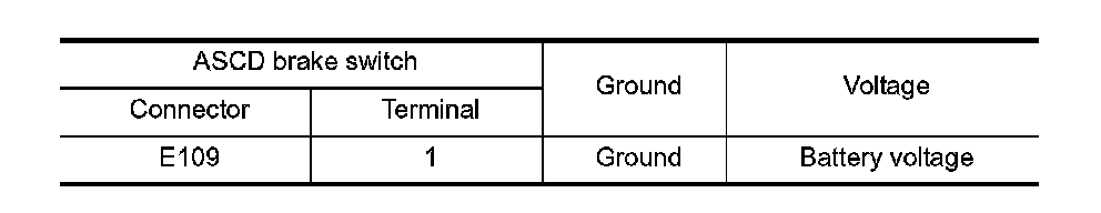4. Check the voltage between ASCD brake switch harness connector and ground.