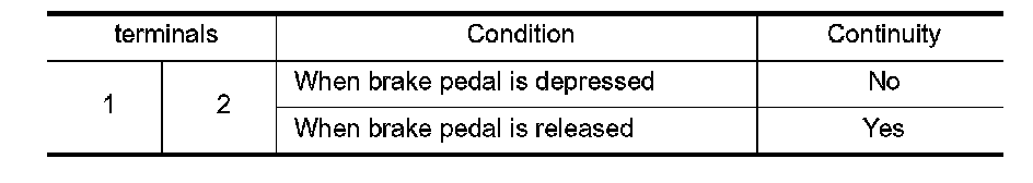 - Check continuity between stop lamp switch terminals.