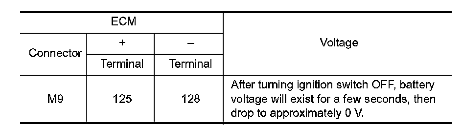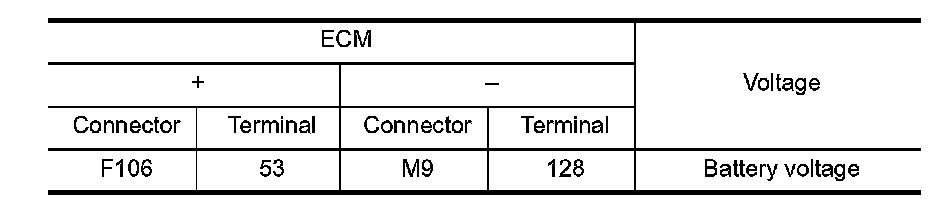 2. Check the voltage between ECM harness connector terminals as per the following.