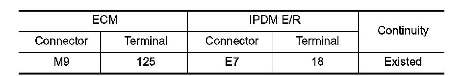3. Check the continuity between ECM harness connector and IPDM E/R harness connector.