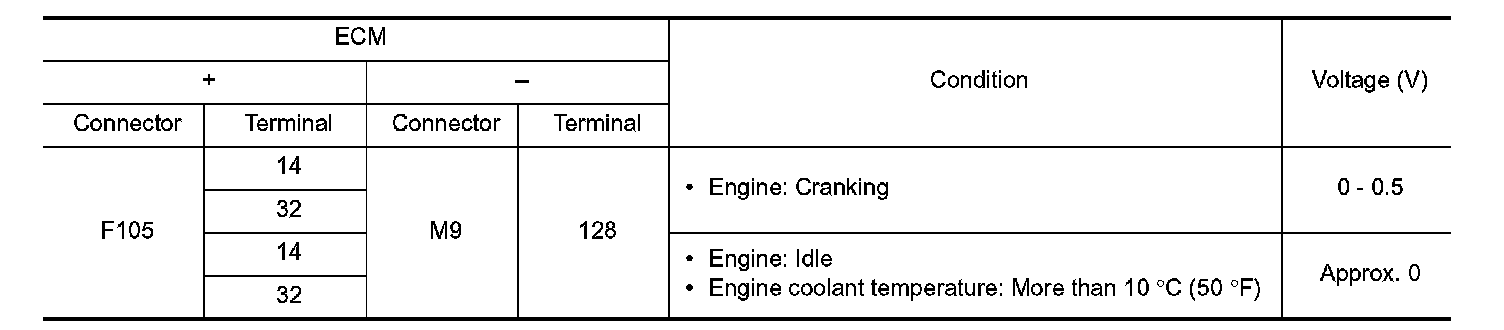 2. Check the voltage between ECM harness connector terminal as per the following.