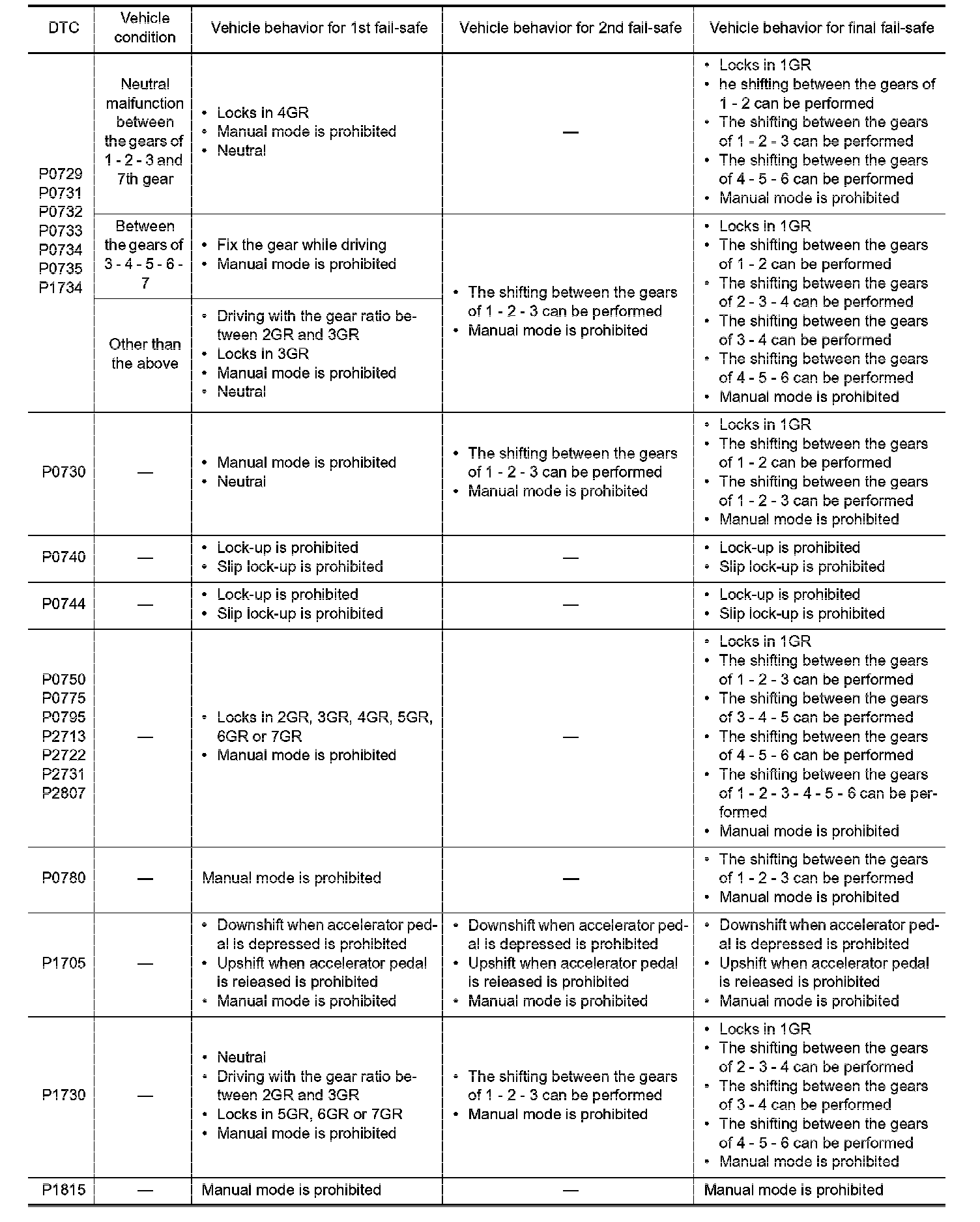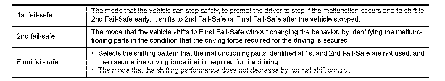 TCM has the electrical fail-safe mode. The mode is divided into a maximum of 3 phases (1st Fail-Safe, 2nd