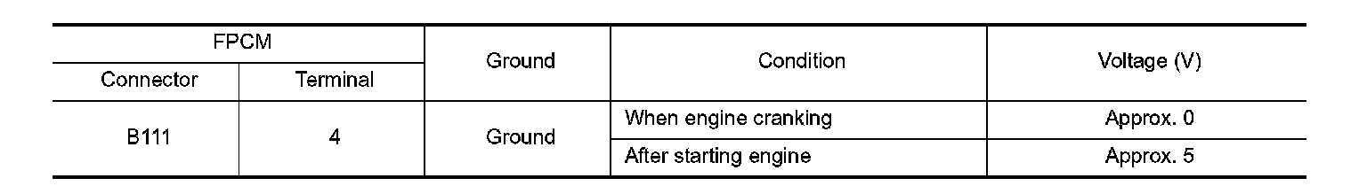 3. Check the voltage between FPCM terminals under the following conditions.