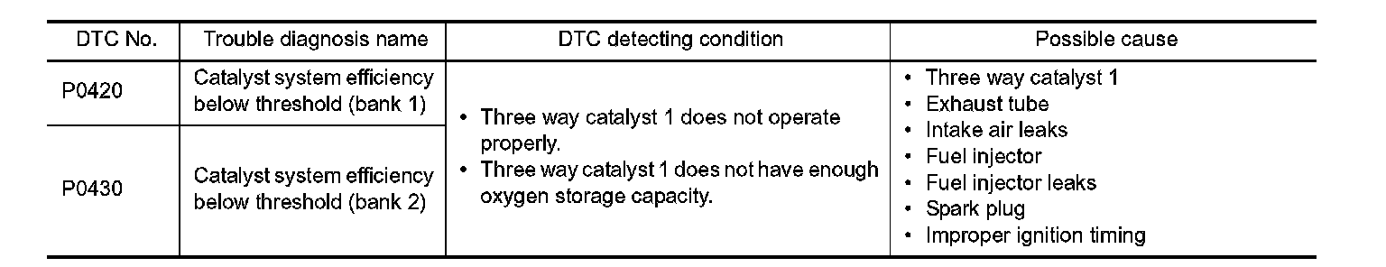 P0420, P0430 THREE WAY CATALYST FUNCTION