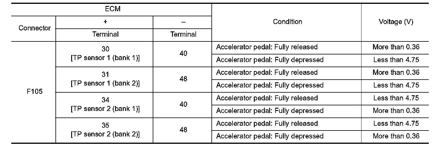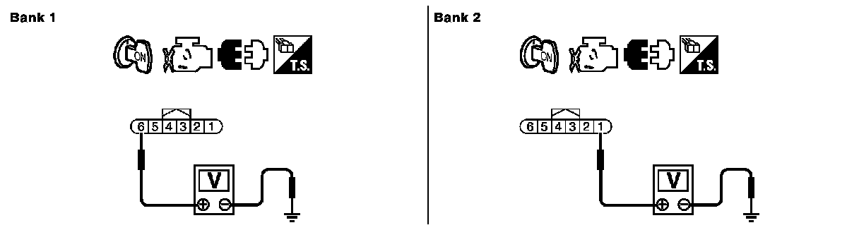 6. Check the voltage between ECM harness connector terminals under the following conditions.