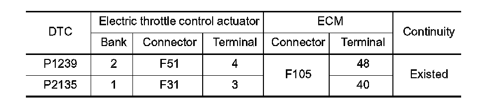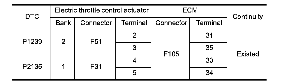 1. Check the continuity between electric throttle control actuator harness connector and ECM harness connector.