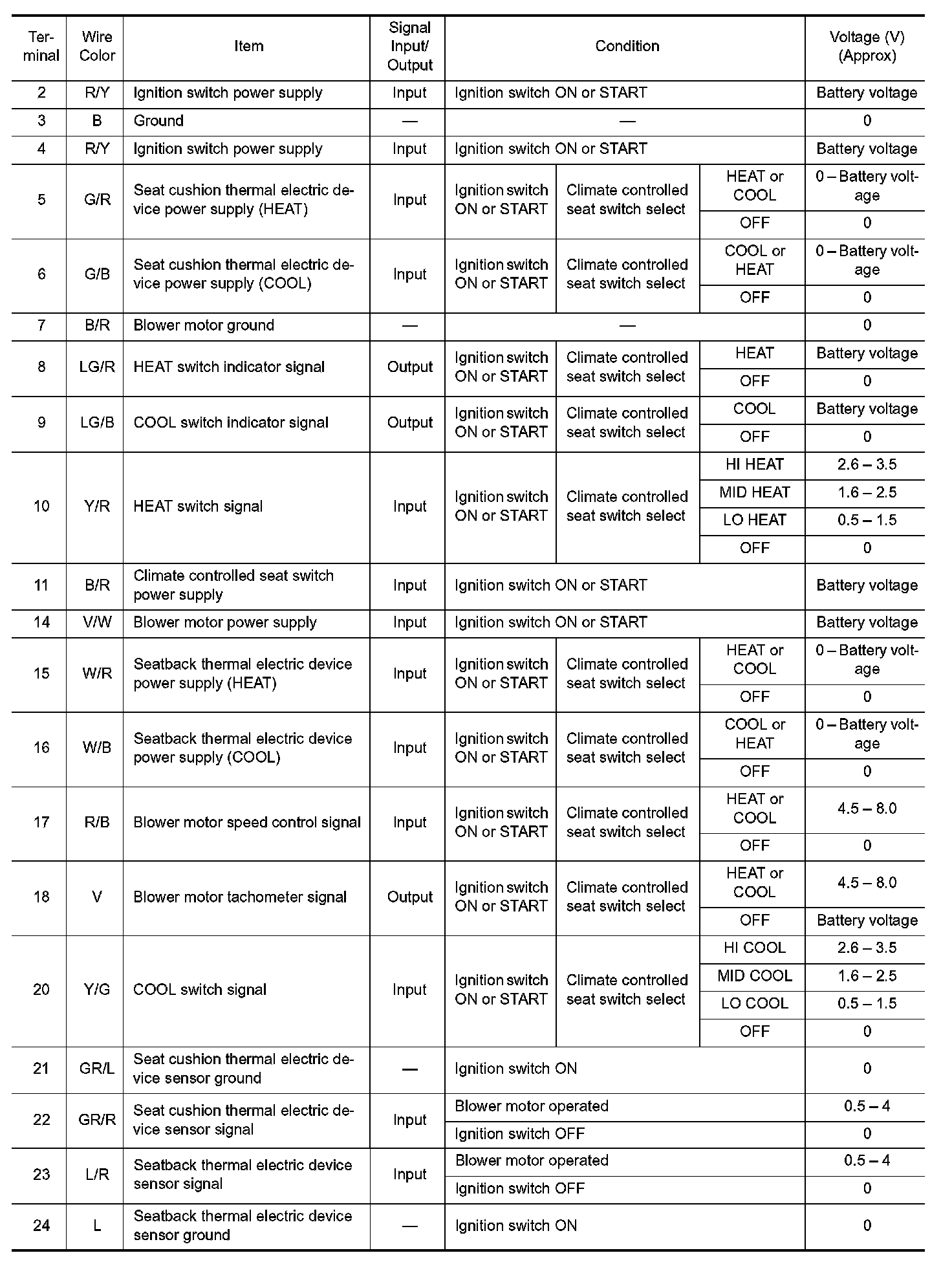 Terminal and Reference Value For Climate Controlled Seat Control Unit