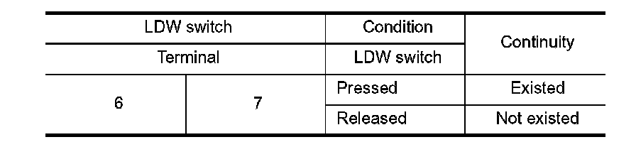 Check continuity of LDW switch.