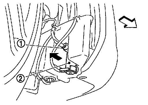 3. Pull out washer pump (2) in direction shown by the arrow in the figure. Remove washer pump from washer tank.