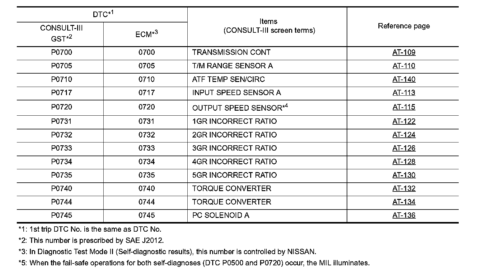 Index For DTC P0700-P0745: