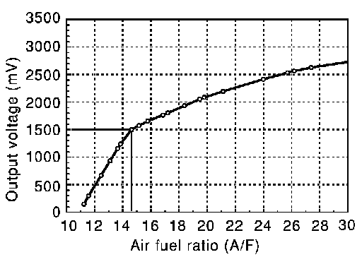 An electronic circuit controls the pump current through the oxygen pump cell so that the composition of the exhaust gas in the diffusion gap remains constant at = 1. Therefore, the A/F sensor 1 is able to indicate air/fuel ratio by this pumping of current. In addition, a heater is integrated in the sensor to ensure the required operating temperature of 700 - 800�C (1,292 - 1,472�F).