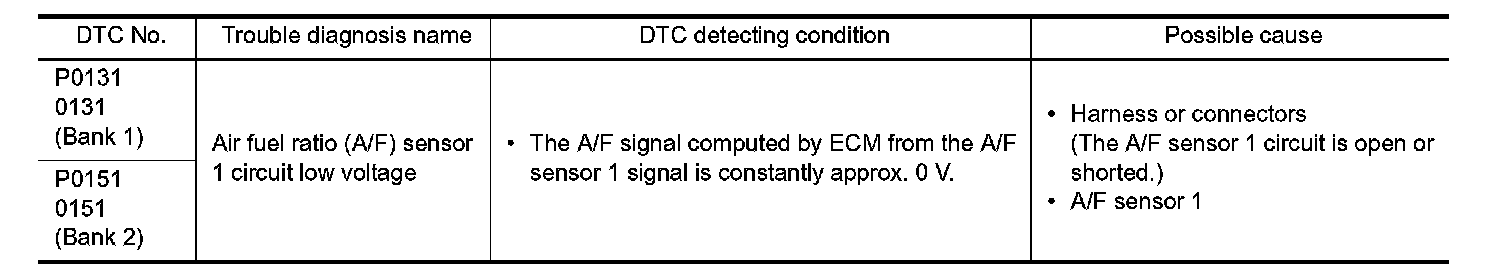 DTC P0131, P0151 A/F SENSOR 1