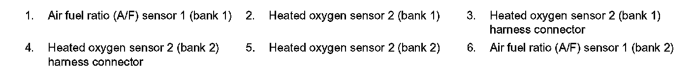 The heated oxygen sensor 2, after three way catalyst (manifold), monitors the oxygen level in the exhaust gas on each bank.