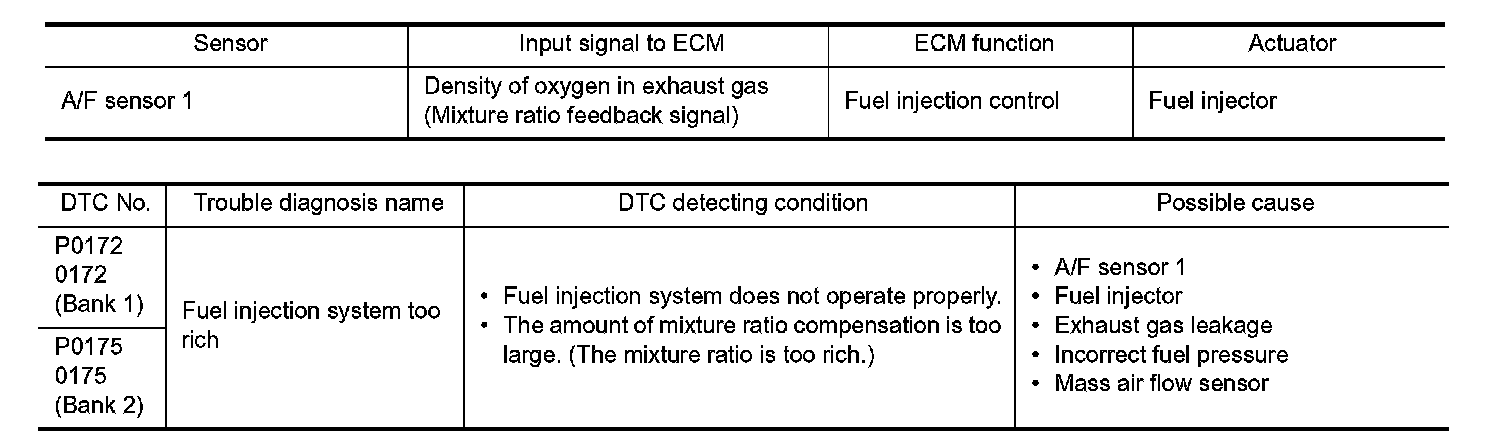 DTC P0172, P0175 FUEL INJECTION SYSTEM FUNCTION