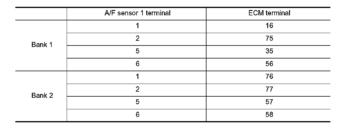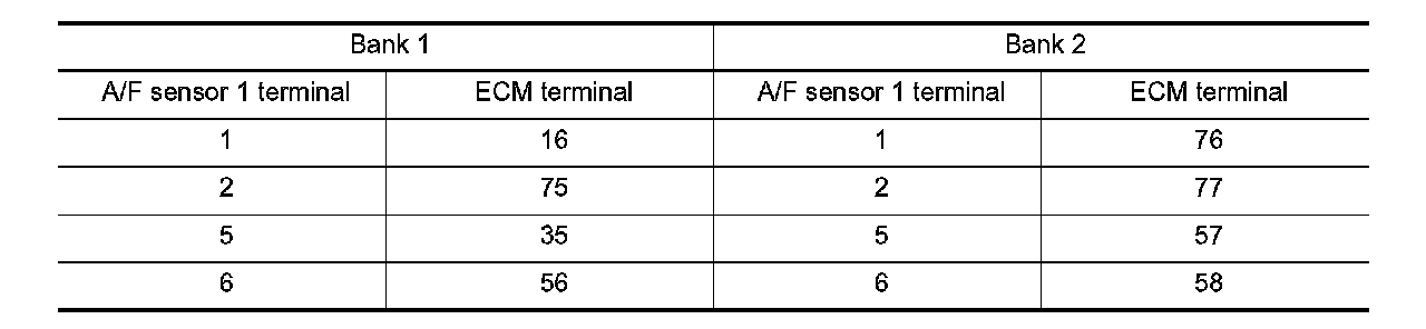 2. Disconnect corresponding air fuel ratio (A/F) sensor 1 harness connector.