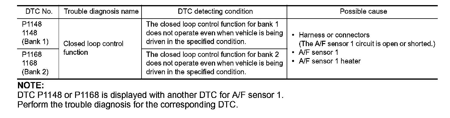 DTC P1148, P1168 CLOSED LOOP CONTROL