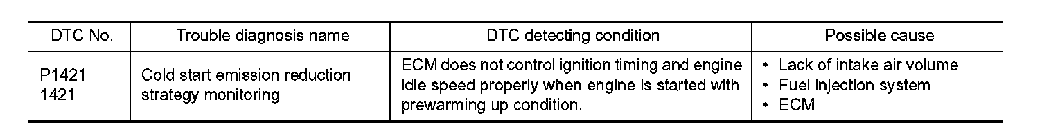 ECM controls ignition timing and engine idle speed when engine is started with prewarming up condition.