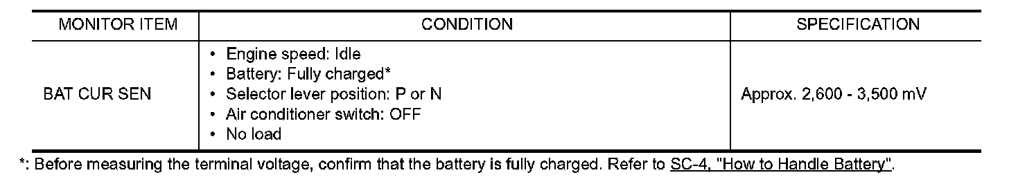 2. Select "BAT CUR SEN" in "DATA MONITOR" mode with CONSULT-III.