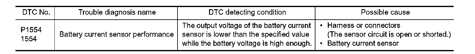 DTC P1554 BATTERY CURRENT SENSOR