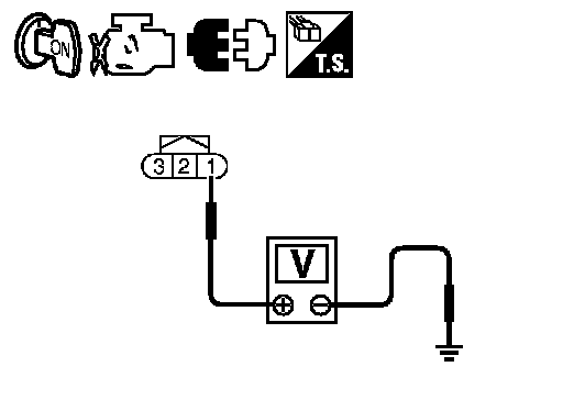 3. Check voltage between battery current sensor terminal 1 and ground with CONSULT-III or tester.