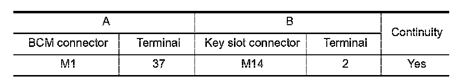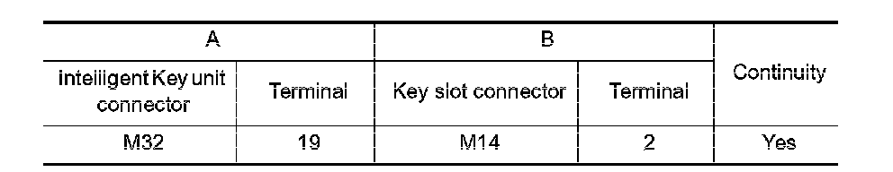 2. Check continuity between Intelligent Key unit connector and key slot connector.