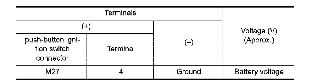 3. Check voltage between push-button ignition switch connector and ground.