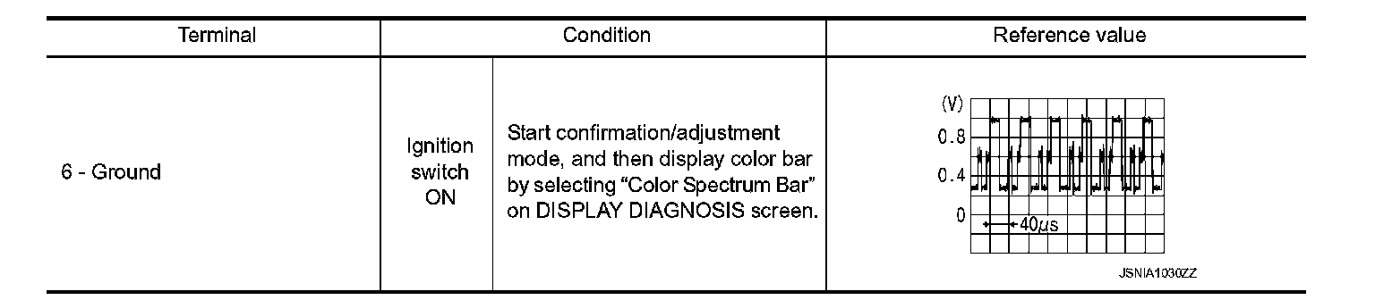3. Check signal between front display unit harness connector terminal 6 and ground.