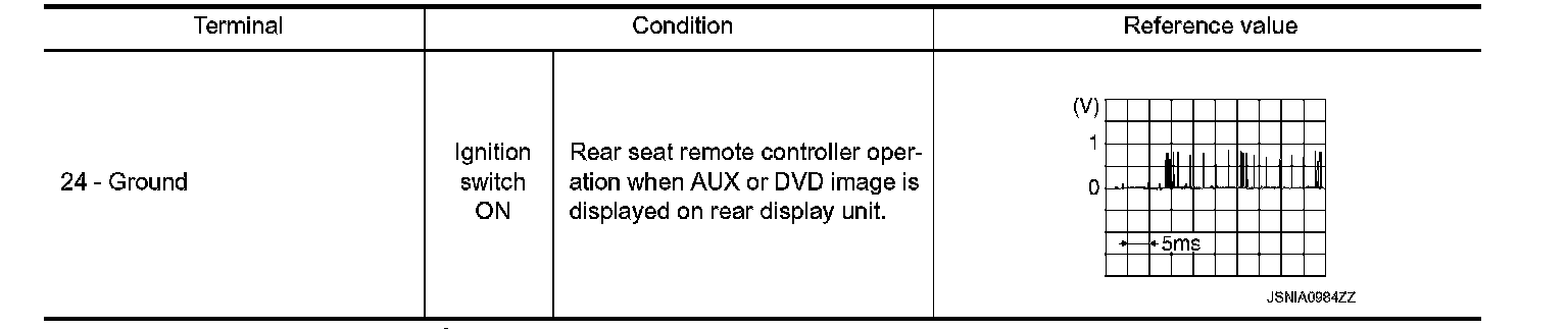 3. Check signal between rear display unit harness connector terminal 24 and ground.