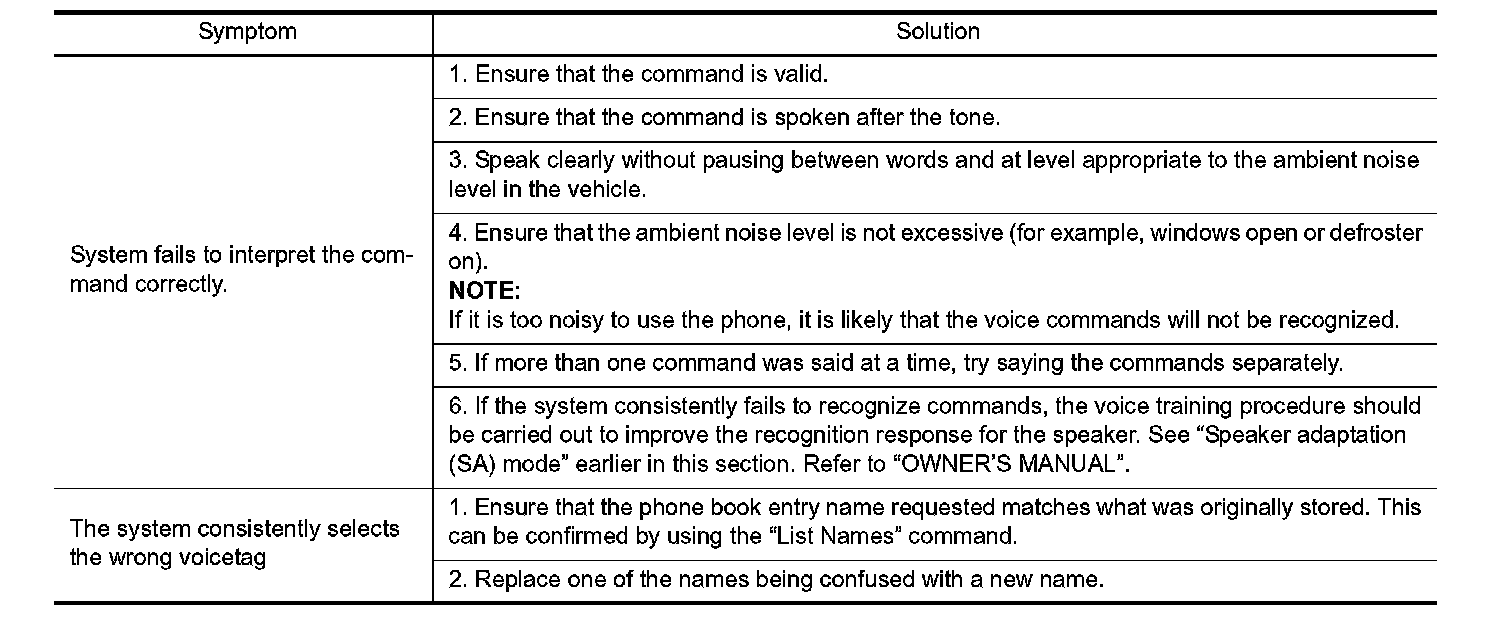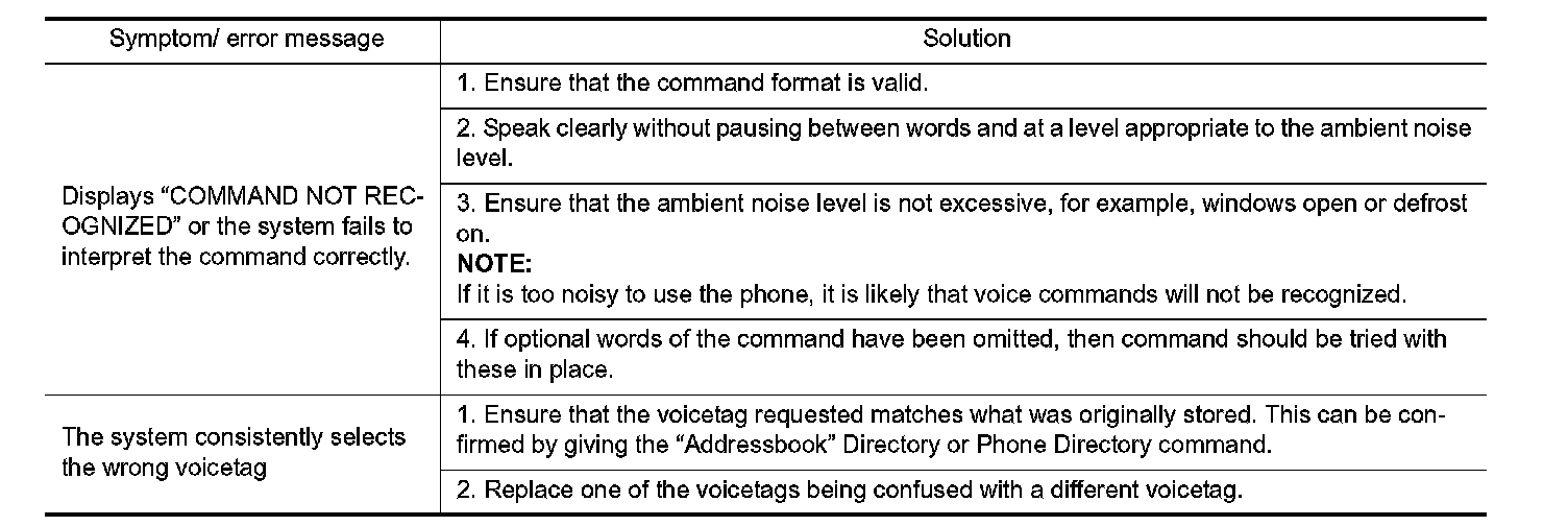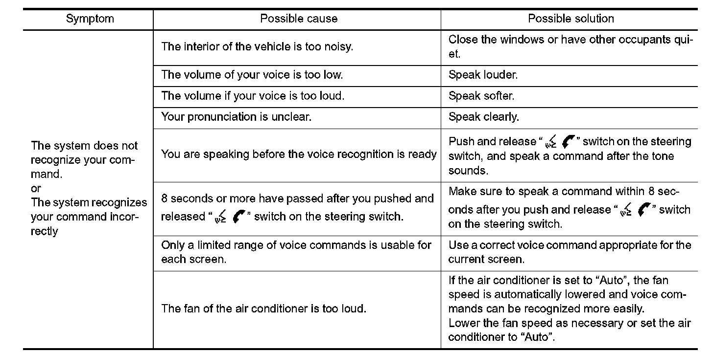 The system should respond correctly to all voice commands without difficulty. If problems are encountered, try the following solutions.