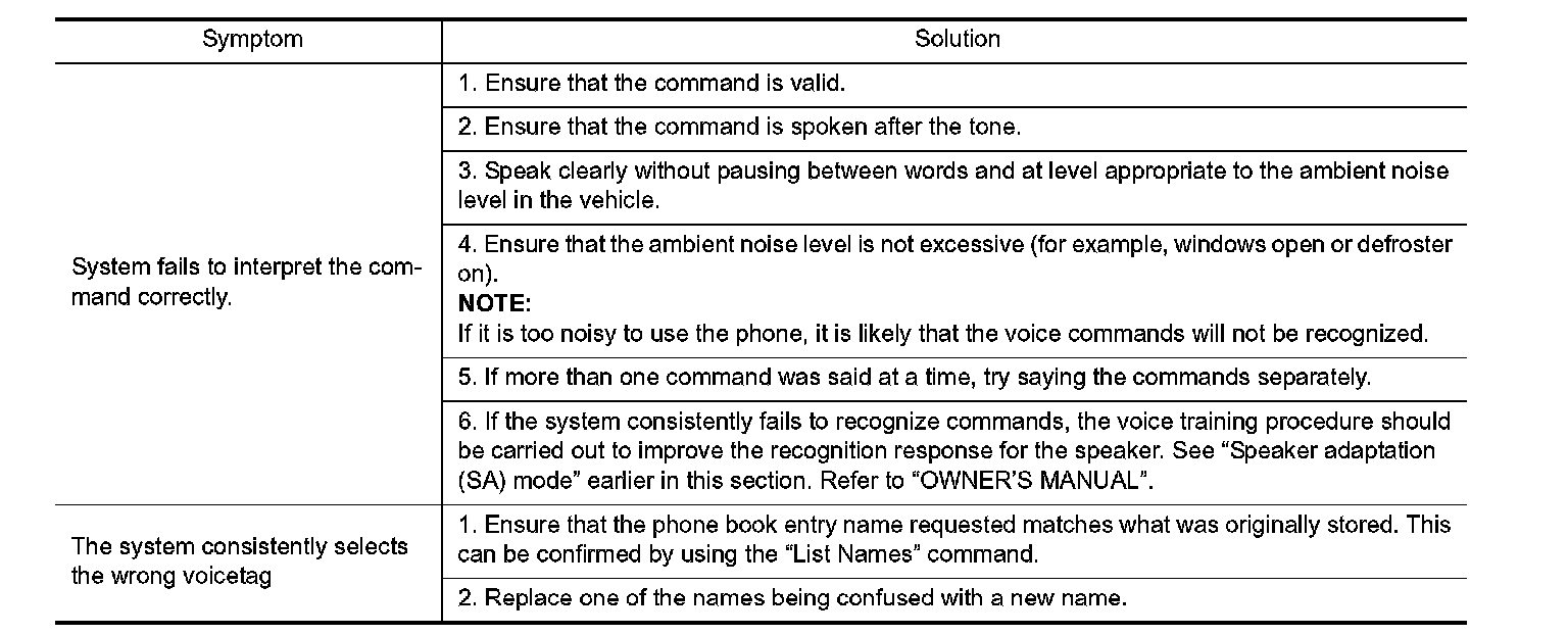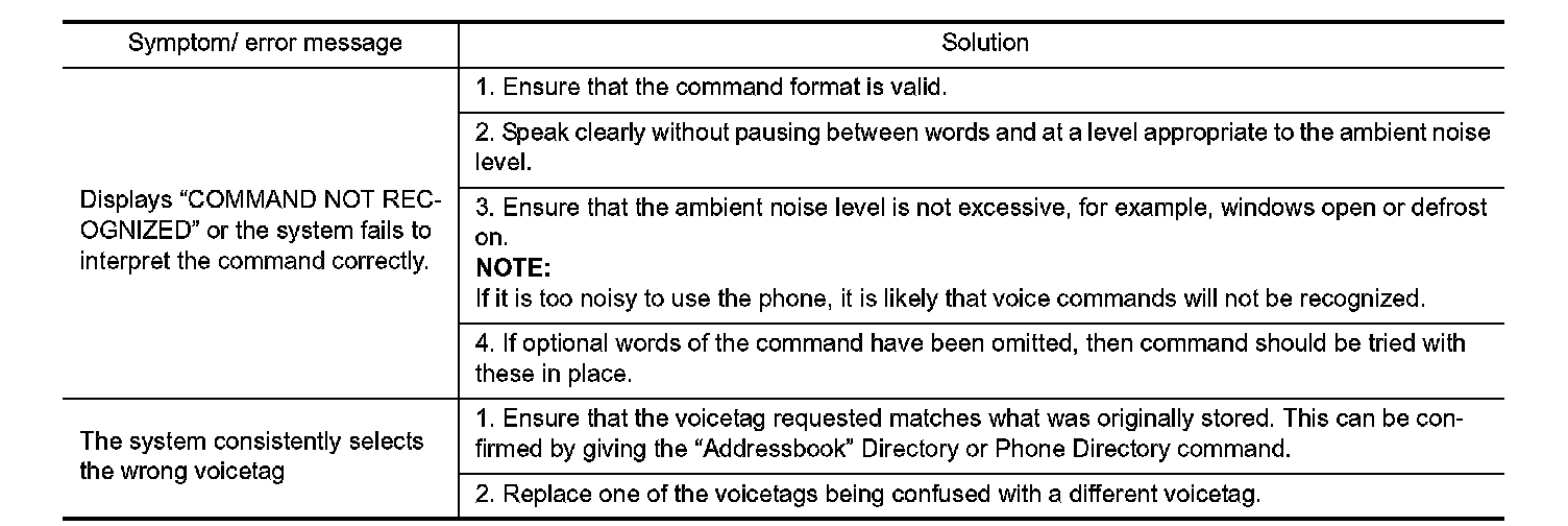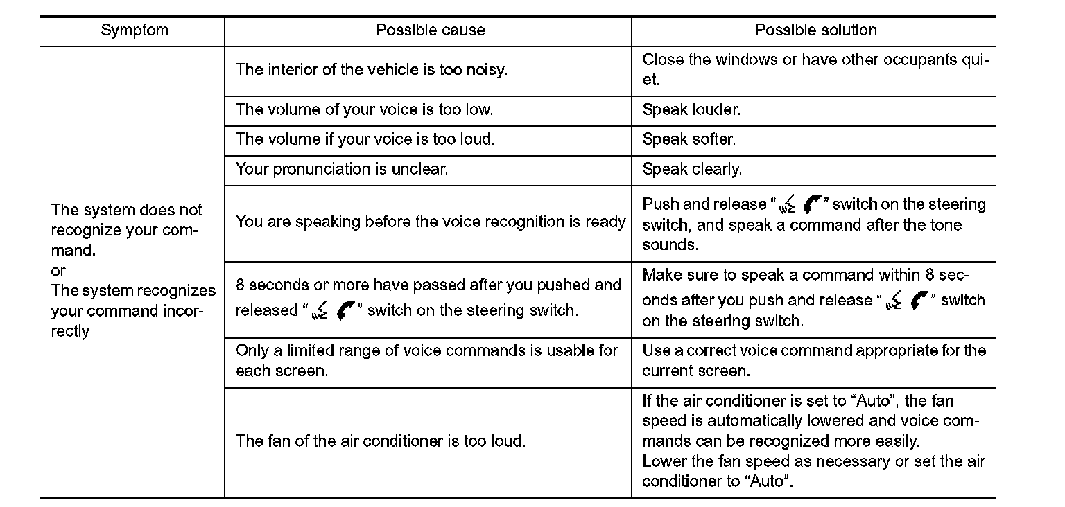 The system should respond correctly to all voice commands without difficulty. If problems are encountered, try the following solutions.