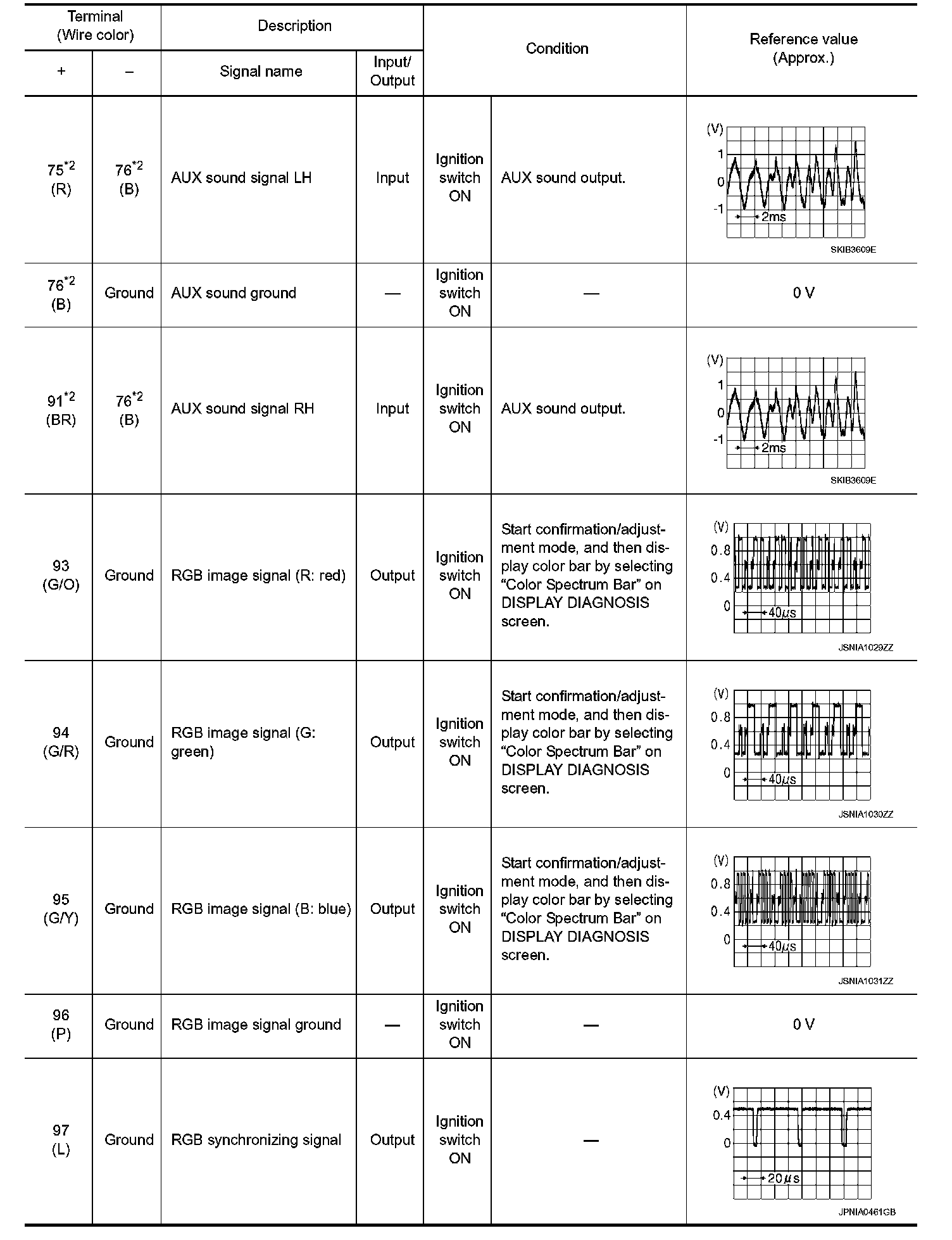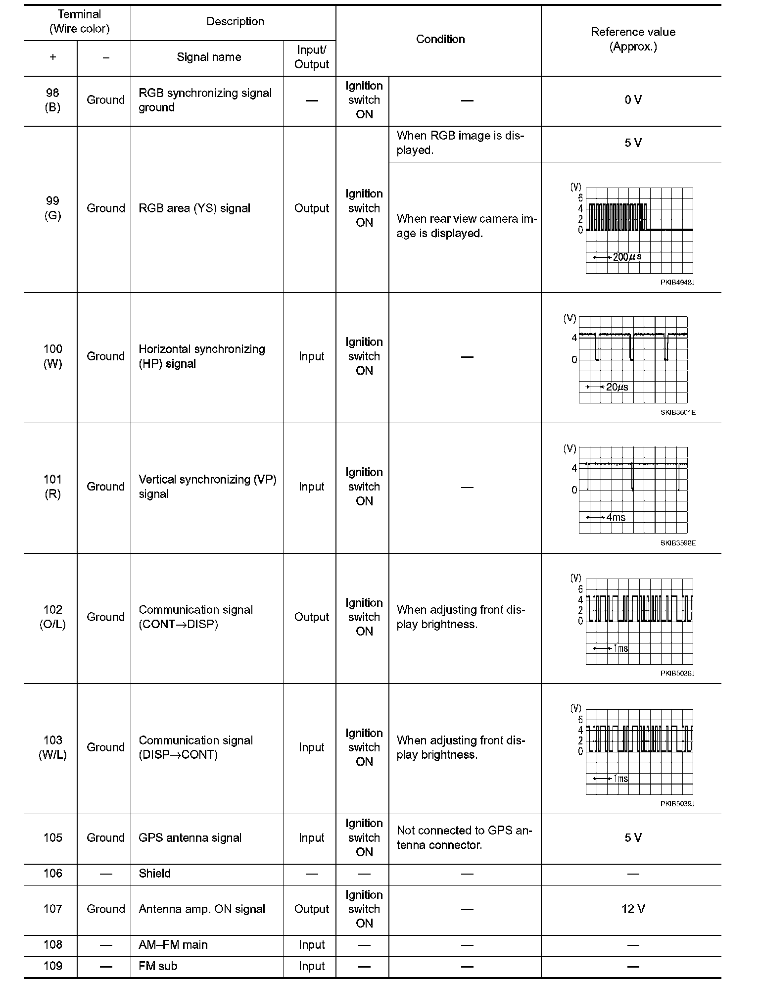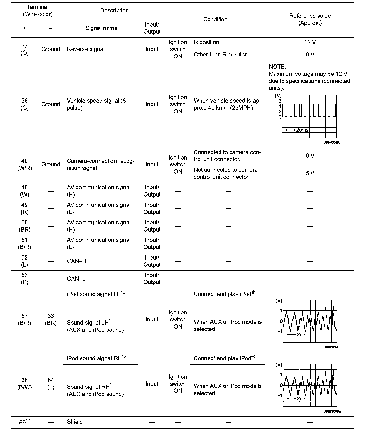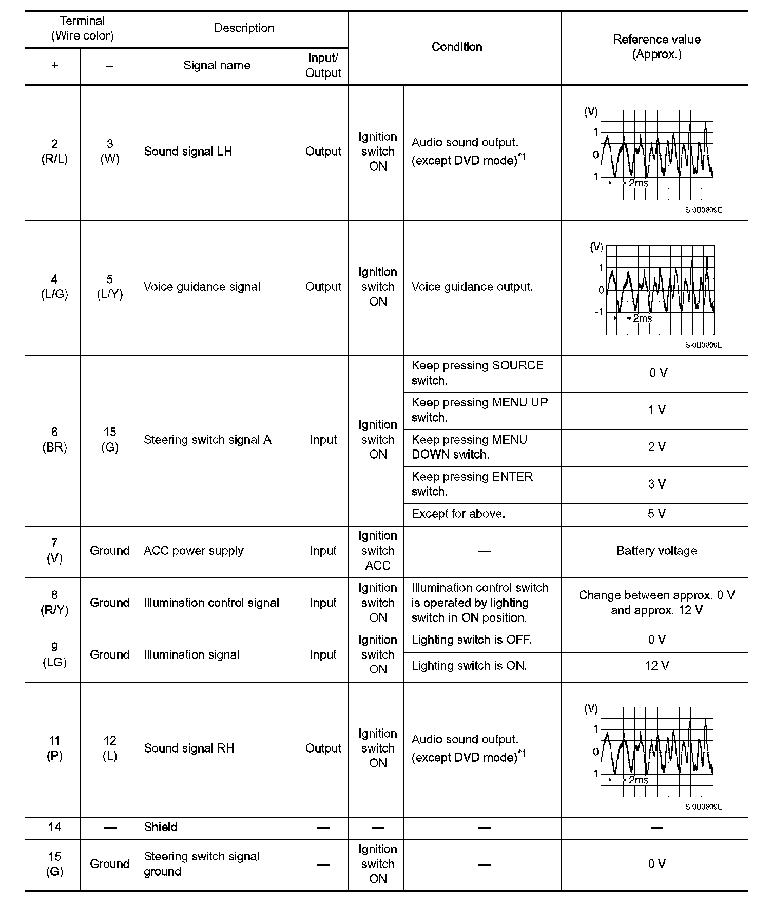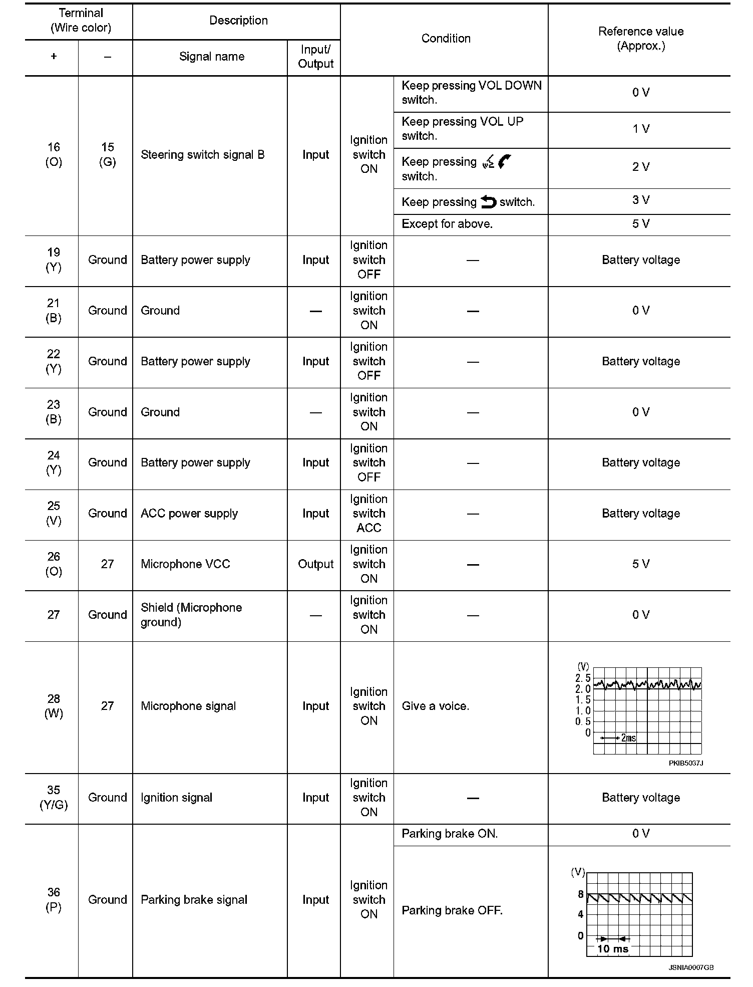 Pinout Values and Diagnostic Parameters