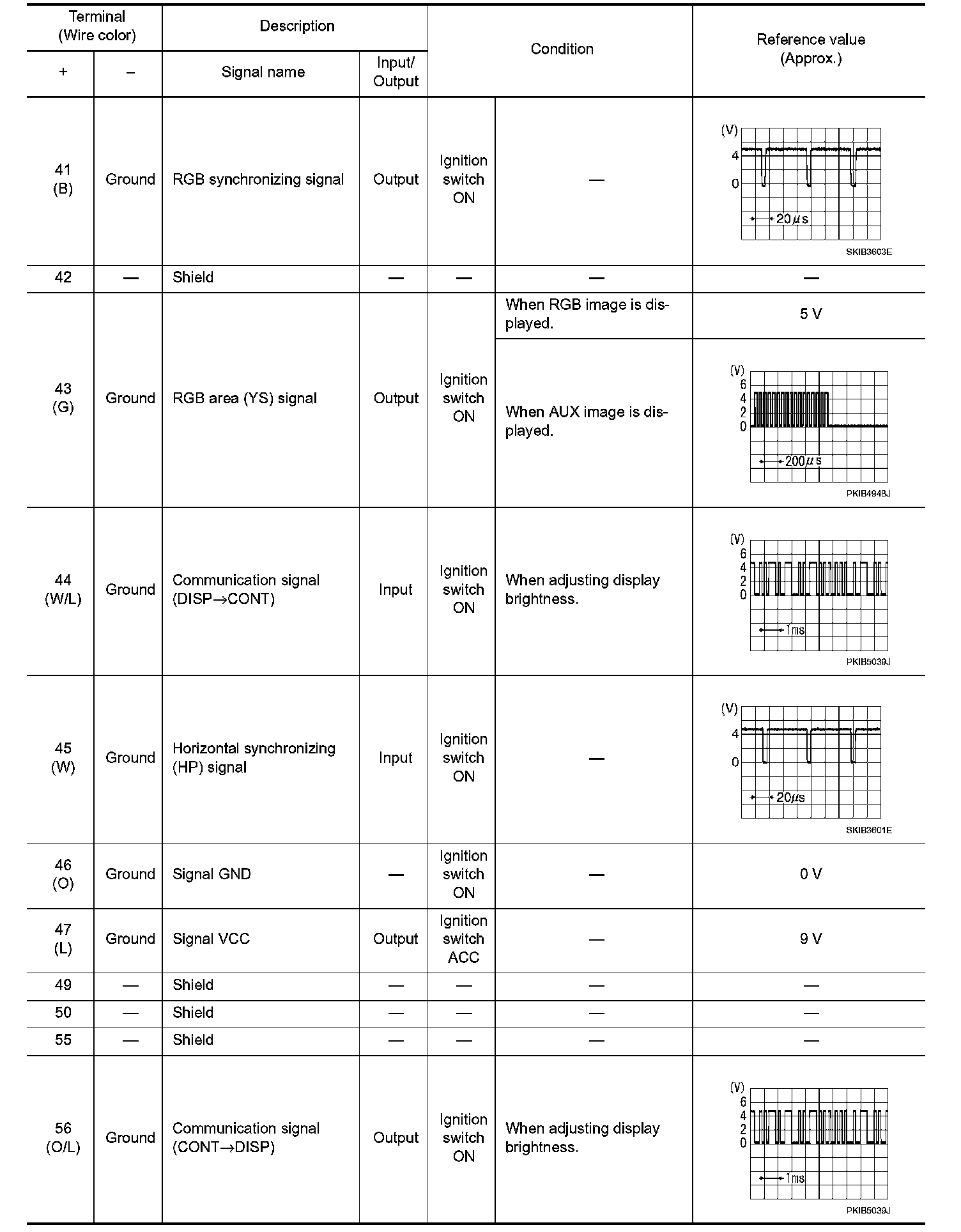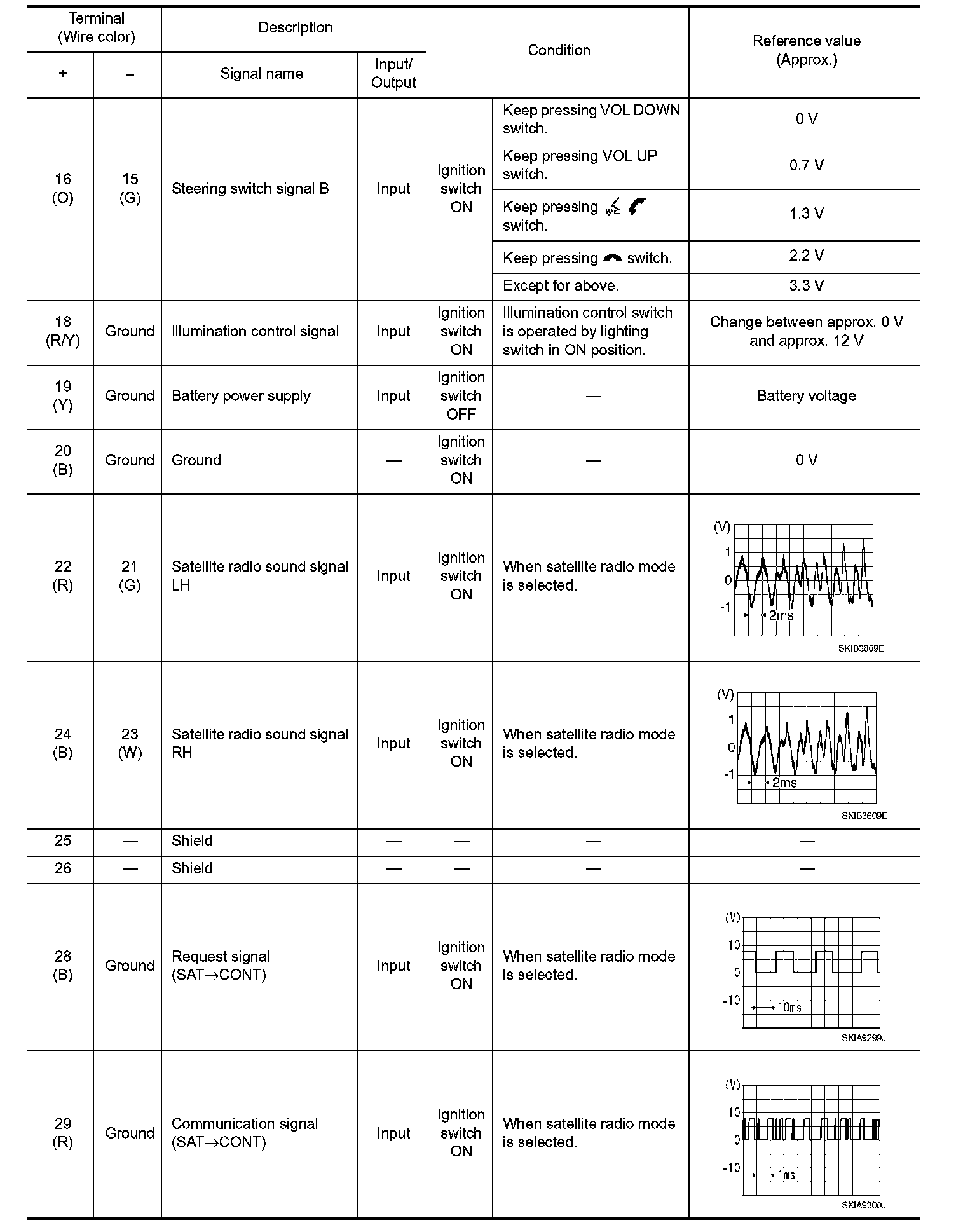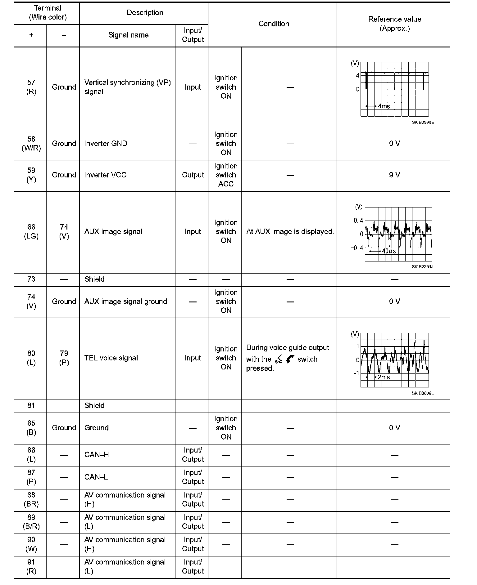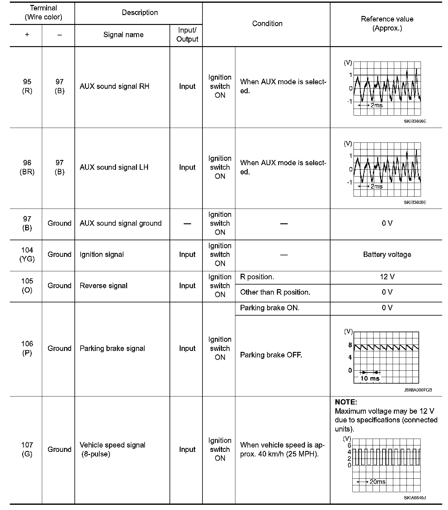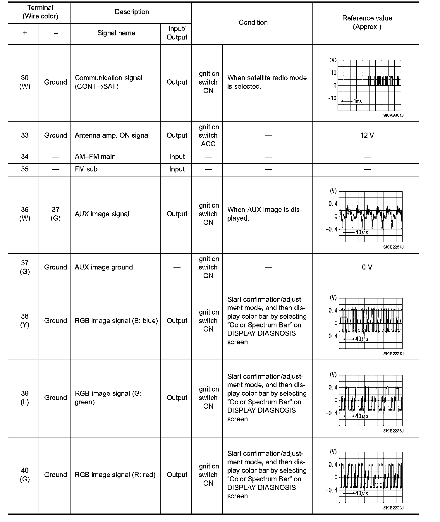 Pinout Values and Diagnostic Parameters