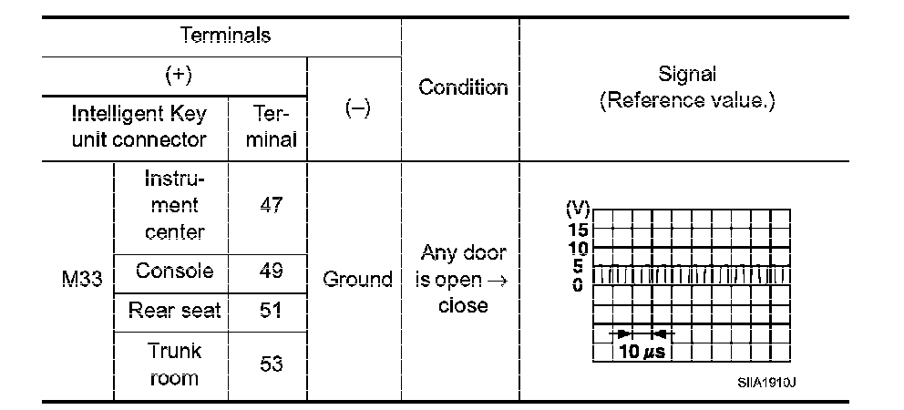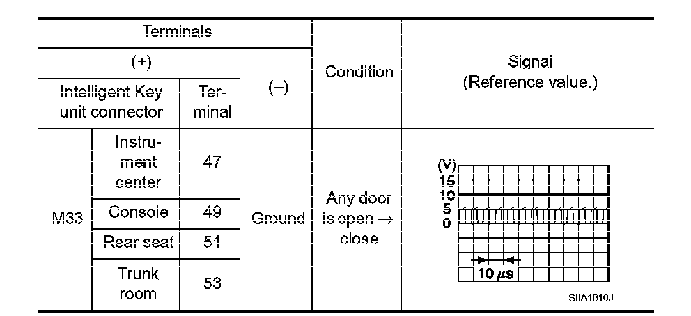 3. Check signal between Intelligent Key unit connector and ground with oscilloscope.