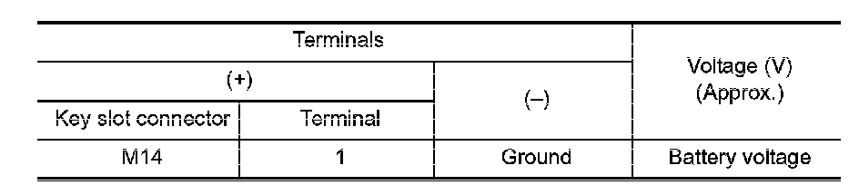 2. Check voltage between key slot connector and ground.