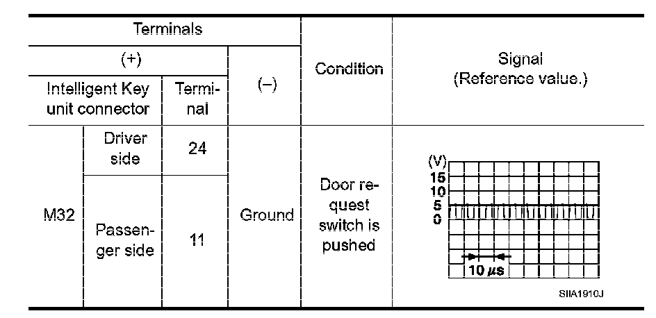 3. Check signal between Intelligent Key unit connector and ground with oscilloscope.