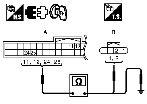 2. Check continuity between Intelligent Key unit connector and front outside handle connector.