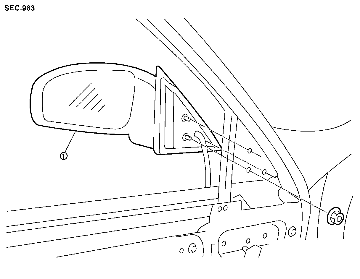 4. Remove the door mirror mounting nuts, and remove the door mirror assembly.