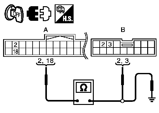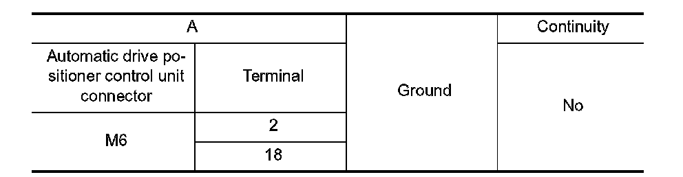 4. Check continuity between automatic drive positioner control unit connector and ground.