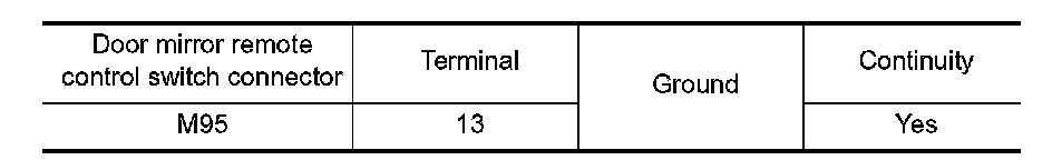 Check continuity between door mirror remote control switch connector and ground.