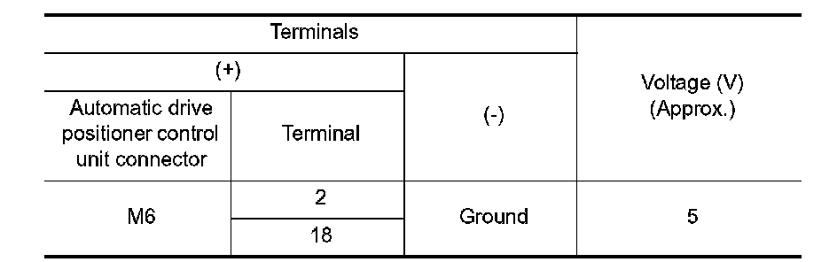 2. Check voltage between automatic drive positioner control unit connector and ground.