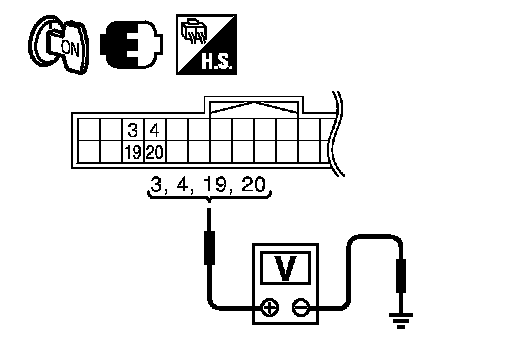 3. Check voltage between automatic drive positioner control unit and ground.