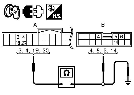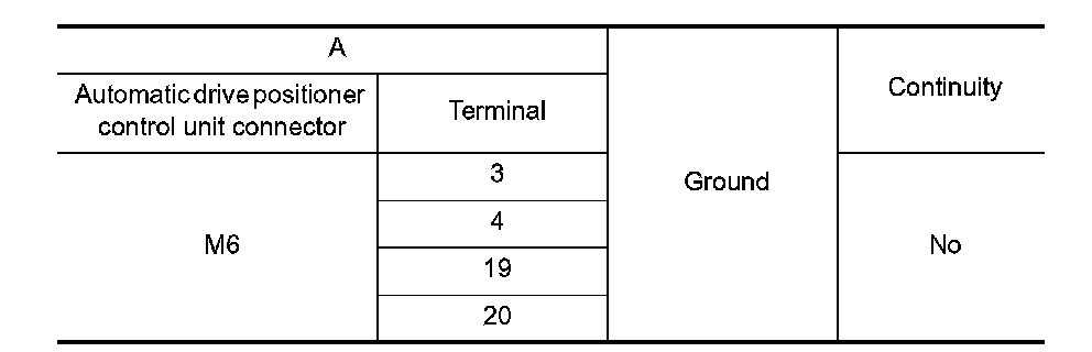 4. Check continuity between automatic drive positioner control unit connector and ground.