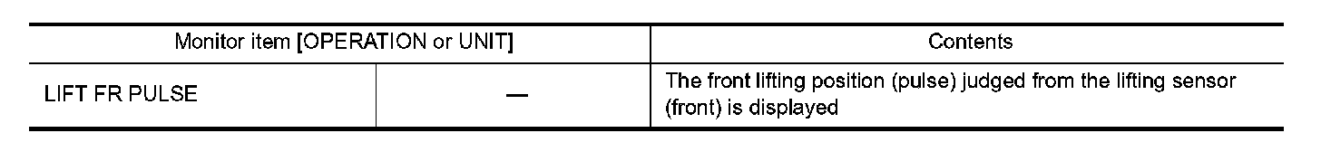 Check operation with "LIFT FR PULSE" on the DATA MONITOR to make sure the pulse changes.