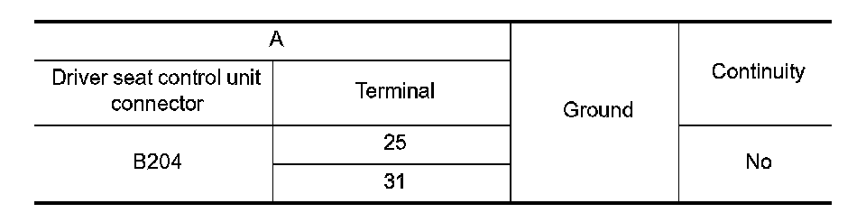 2. Check signal between driver seat control unit connector and ground, with oscilloscope.