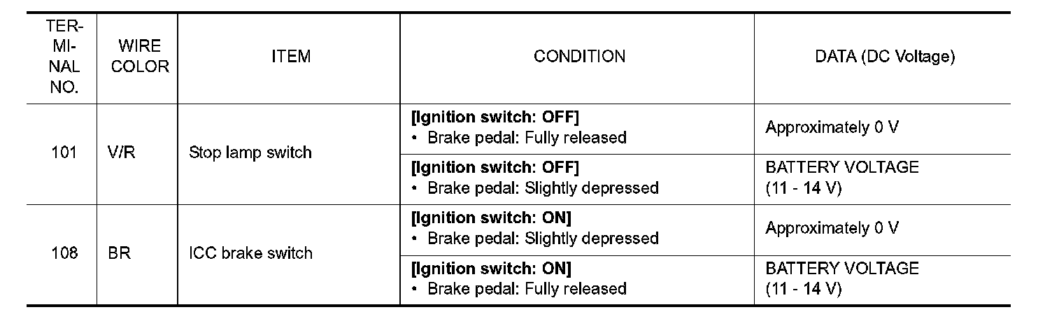 Never use ECM ground terminals when measuring input/output voltage. Doing so may result in damage to the ECM's transistor. Use a ground other than ECM terminals, such as the ground.